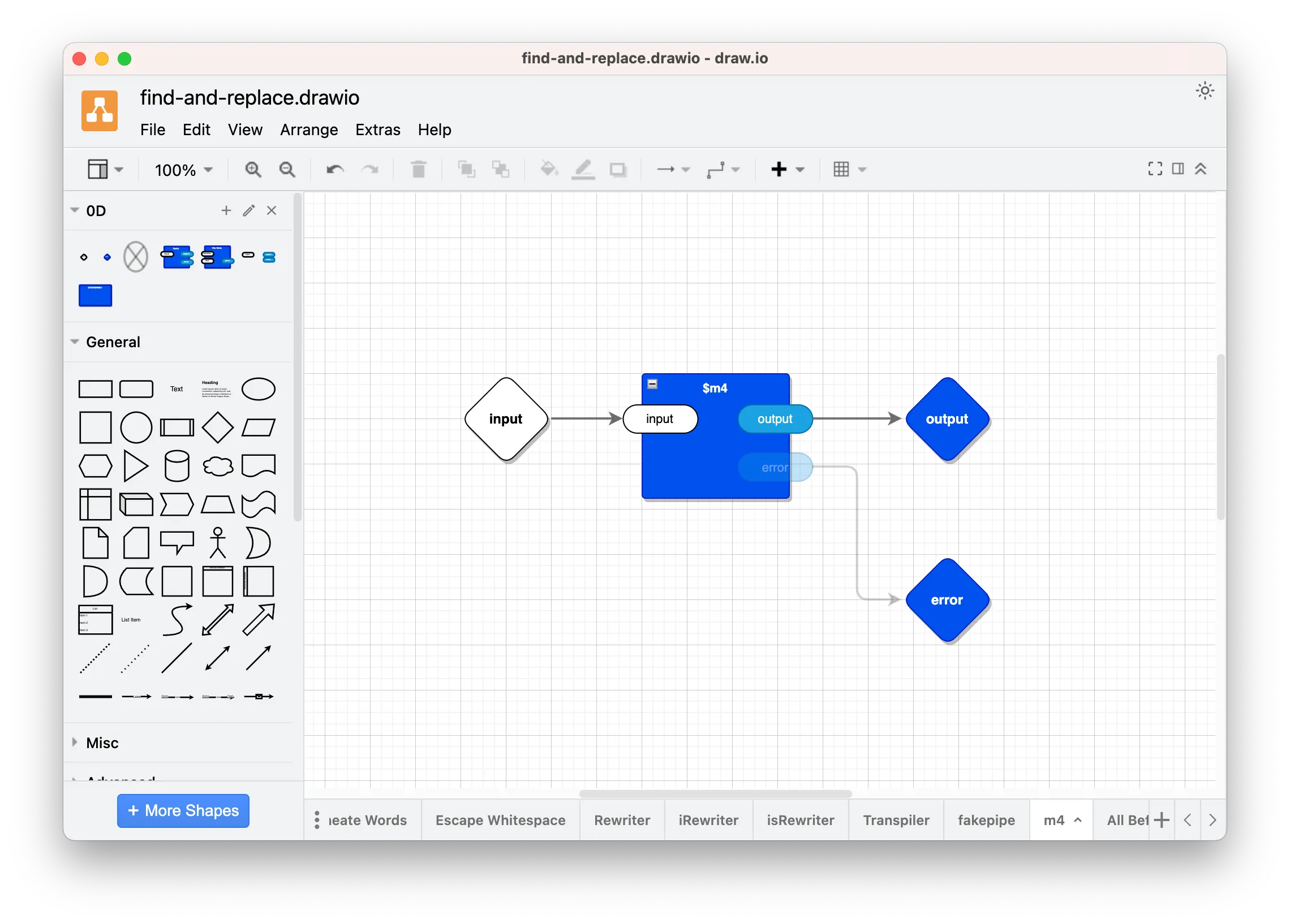 in this case, $m4 invokes the m4 command and gives it stdin from the input pin input