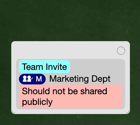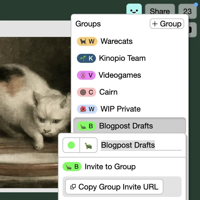Group related spaces together and share them with multiple people at once. Each Group member can see and edit all of the spaces in a Group. Use Groups for projects, teams, or like personal folders – it’s really up to you.