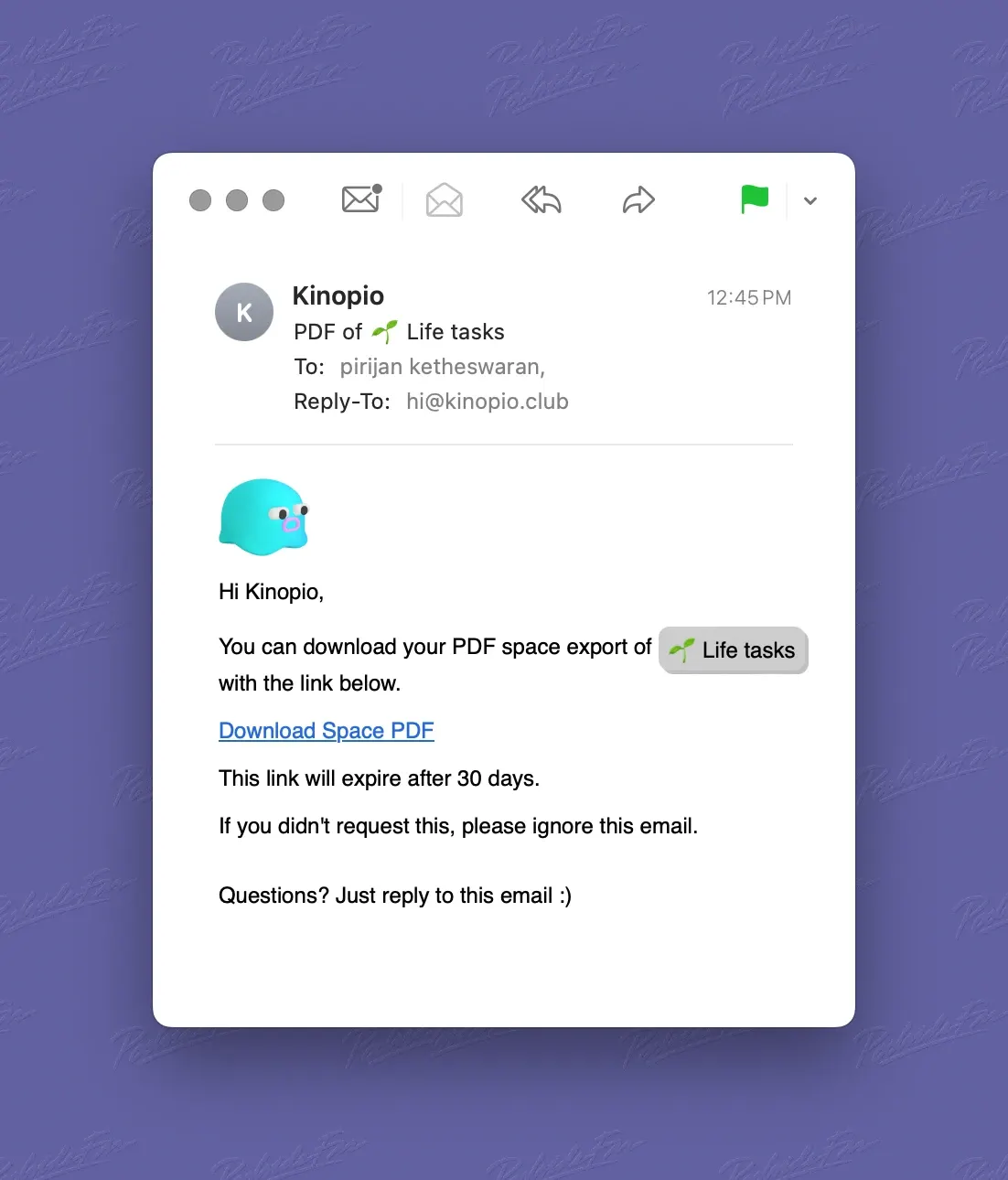 The accuracy of space PDFs has been improved. Also, instead of having to wait in the app for the PDF to generate (which could take a minute~), you’ll now receive an email once it’s ready to download.