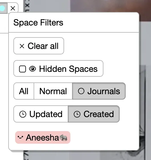 Improved Hiding Spaces marking spaces as hidden is now scoped to the user instead of the space itself. So if you’re in a group or a collaborator and you hide a space, that space will only be hidden to you (instead of hidden to everyone as before).